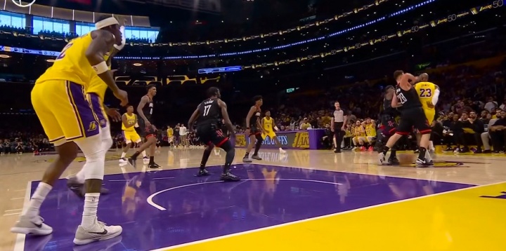太软了!詹姆斯精妙背传找到艾顿 后者面对伊森只是造到了犯规