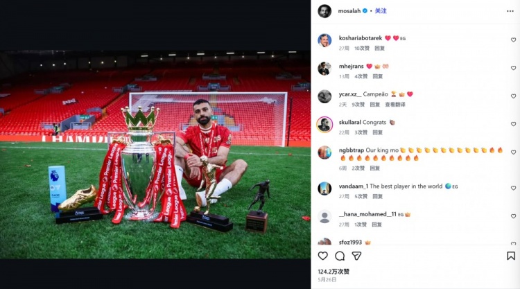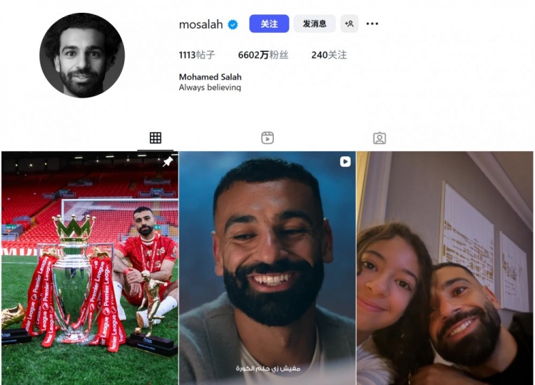 值得一提的是,萨拉赫当前社媒置顶了一张5月发布的旧动态,是他和英超冠军奖杯以及包括金靴在内的多项个人奖项的合影。这似乎也是他对于外界批评声的无声回击。