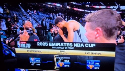本场比赛保罗来到现场观战两个老东家的对决,比赛结束后,文班亚马和保罗耳语了一番,随后两人击掌庆祝。