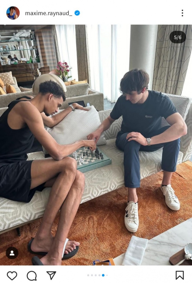 跟超级体育生+高材生的爽文标签相比,雷诺更出圈还是他和文班亚马下国际象棋的图片。“少林武僧”文班亚马是个爱体验各种项目的年轻人,他不仅跟Espoirs Nanterre俱乐部青年队、国青的队友雷诺下棋,还被拍到跑去纽约的公园里找老大爷下棋,只是两人的水平就是入门选手和资深玩家的差别。