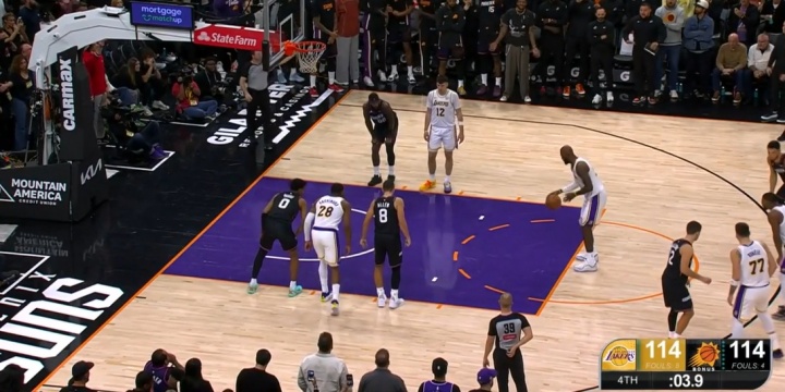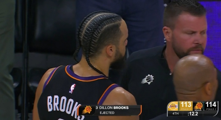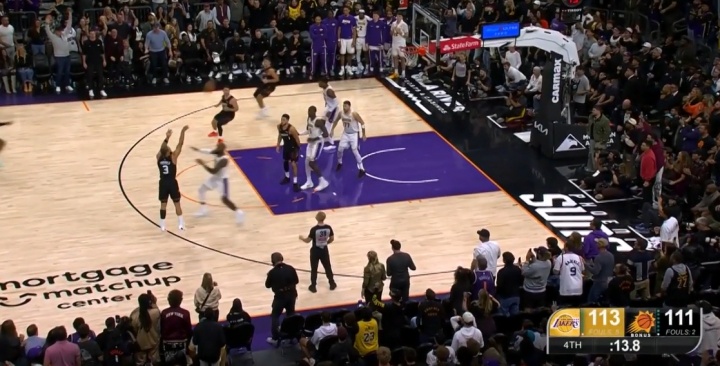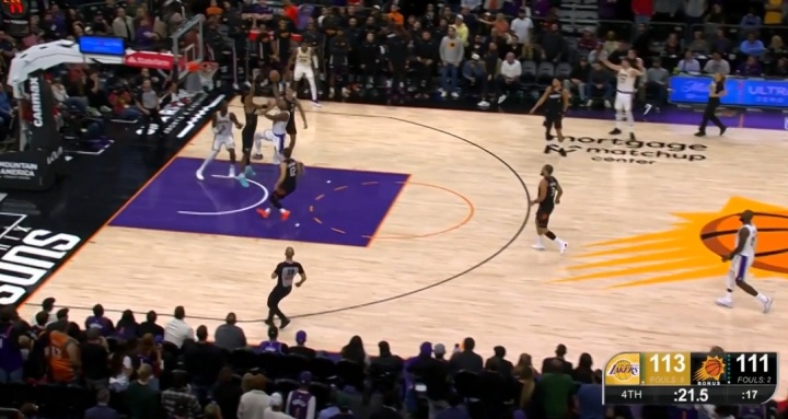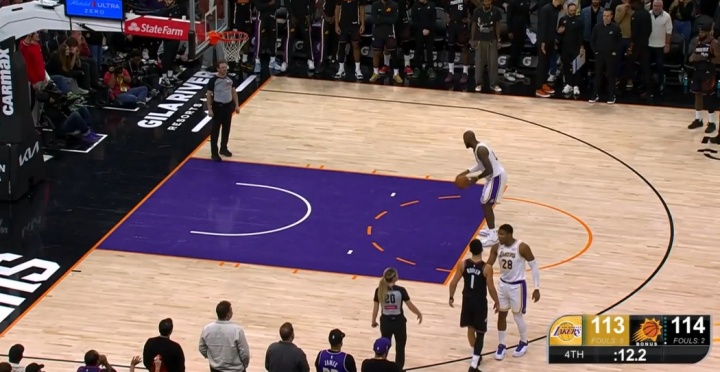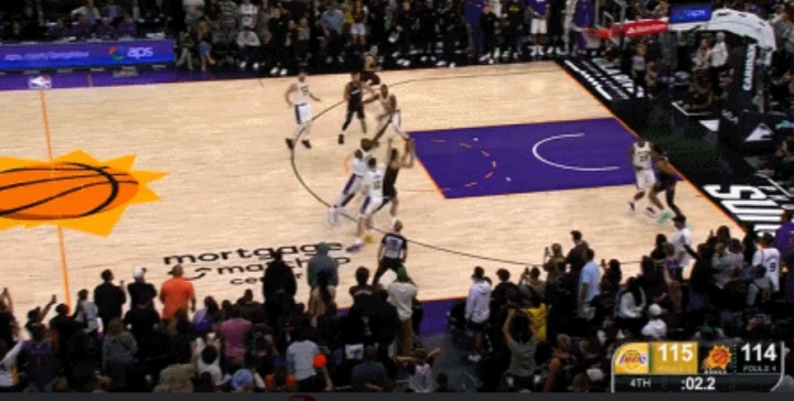 GIF-斯玛特突然冲进内线上篮被帽GIF-太阳直接反击,布克三分没进,但二次进攻狄龙轰进三分反超1分GIF-狄龙在詹姆斯的扑防下倒地,随后起身用身体冲撞詹姆斯GIF-裁判吹狄龙技术犯规,狄龙累计两T被驱逐GIF-詹姆斯扳平的技术犯规罚球没进GIF-詹姆斯接东契奇传球造成三分犯规,太阳挑战失败GIF-詹姆斯三罚两中反超GIF-阿伦投篮被詹姆斯盖帽,斯玛特篮板造成犯规