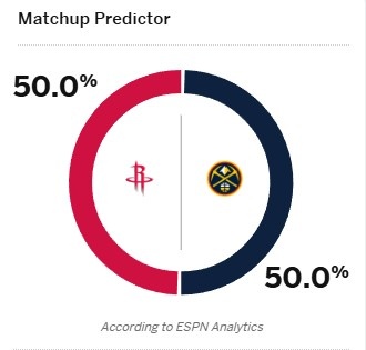 旗鼓相当的对手?ESPN预测明日火箭VS掘金胜率 双方都是50%
