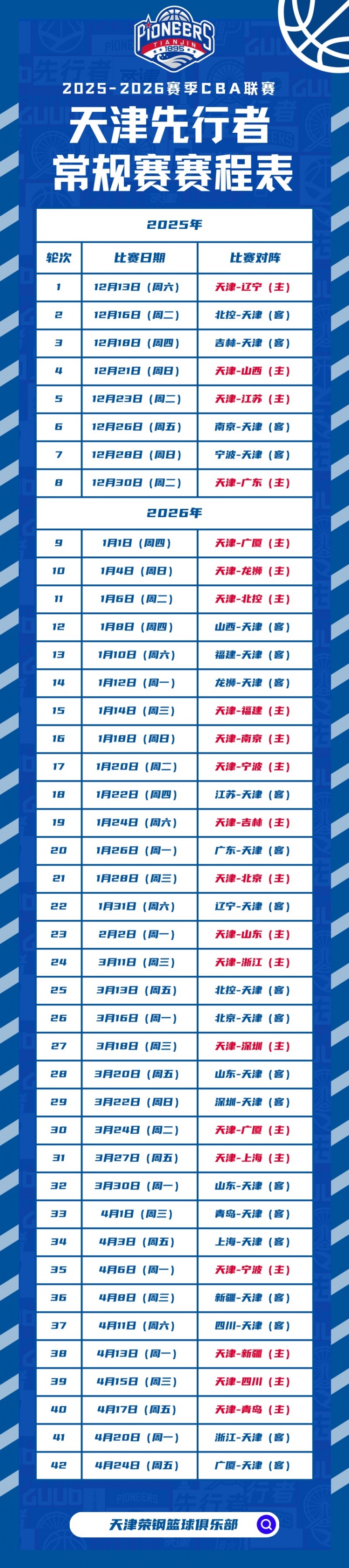 12月16日,2025-2026赛季CBA常规赛第2轮,天津先行者将在客场对阵北京控股。抖音平台将直播本场比赛。值得一提的是,本场比赛被列为CBA潜力赛场次,双方年轻球员将同场竞技,在京津赛场展开青春力量的直接对话。
