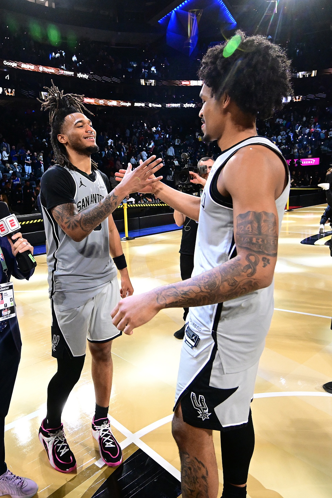 12月16日讯 近日,马刺后卫卡斯尔接受了采访,谈到了自己和福克斯、哈珀的组合。他说:“是的。呃,三个高智商的后卫,嗯,你知道,我们不在乎是谁完成终结。而且我觉得当你在场下也喜欢你的队友时,比赛会变得容易得多。所以,我的意思就是分享球权。就像我之前说的,我们是一支阵容深度很棒的球队。我们有很多球员在任何夜晚都能站出来。所以,不管轮到谁爆发,我们都会跟着节奏走。”
