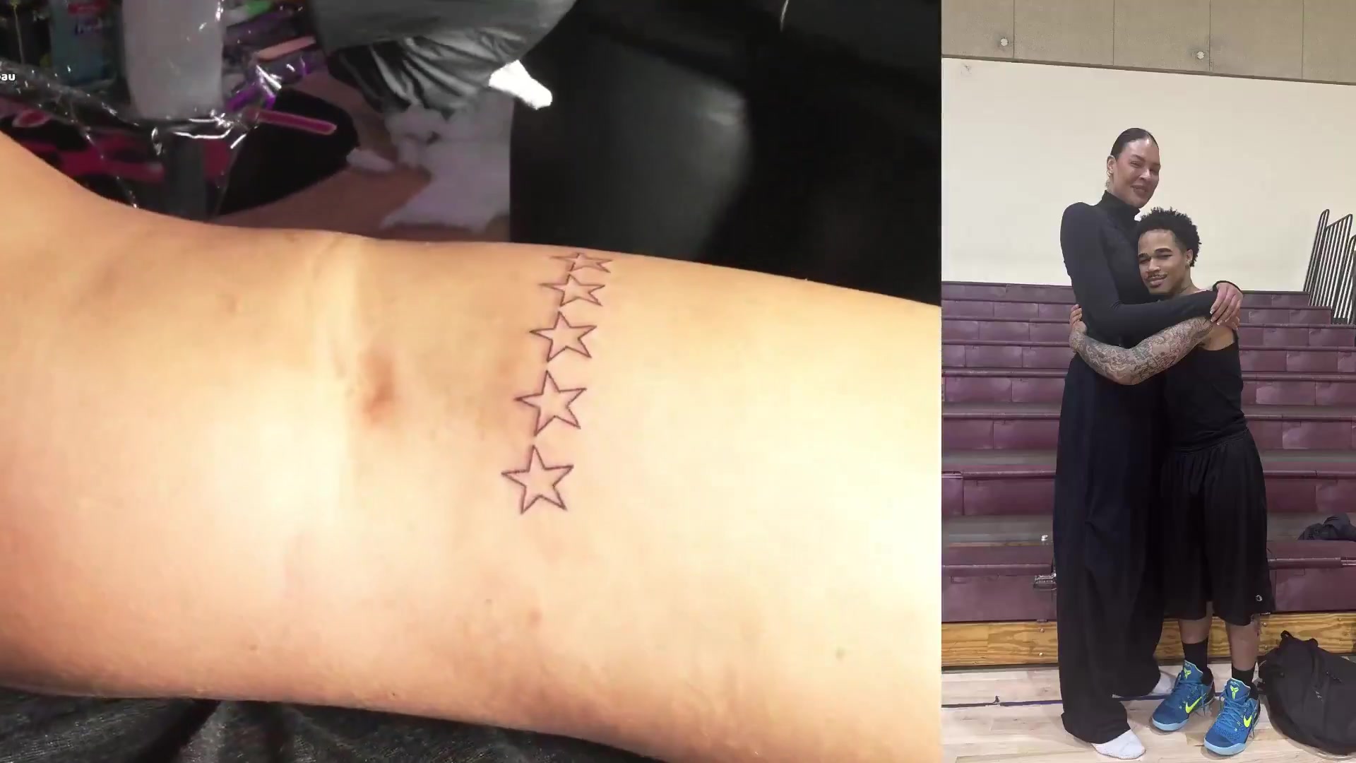 在约会场所,坎贝奇遵守承诺在自己腿后文了五个五角星,男网红还惊奇抚摸。