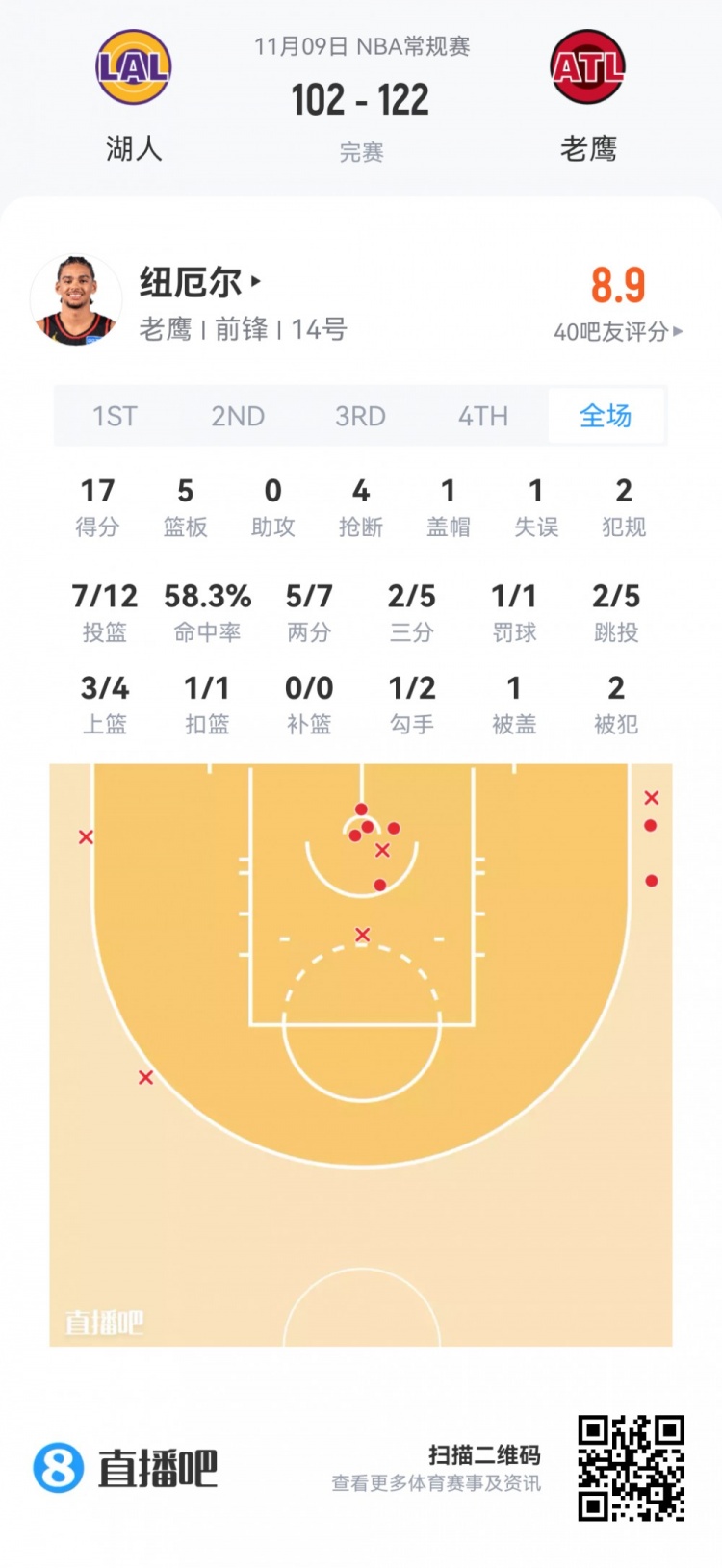 【菜鸟】纽厄尔17分4断抢懵湖人 弗拉格12分7板 埃奇库姆11分7板