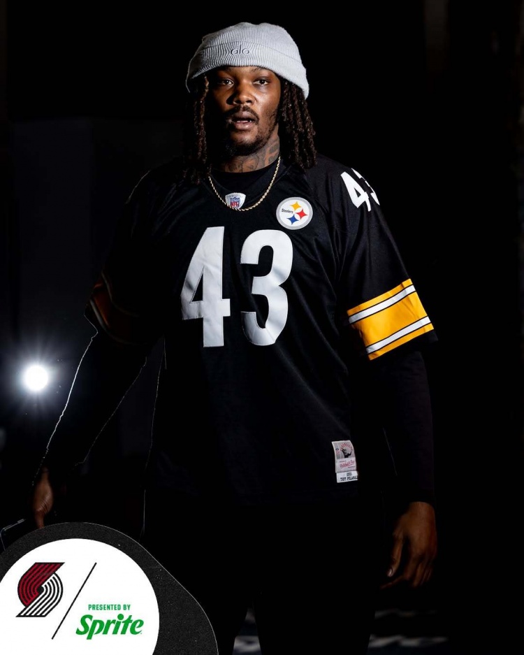 挑战联盟第一!开拓者型男入场秀 杨瀚森黑夹克小粉包反差萌