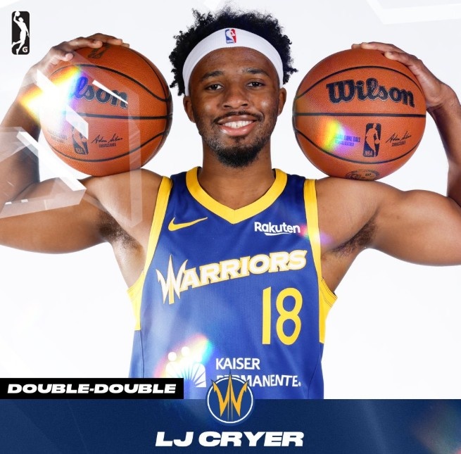 12月2日讯 据勇士随队记者Anthony Slater报道,消息人士透露,勇士计划与后卫LJ·克赖尔签下一份双向合同。据悉,克赖尔出生于2001年,身高仅仅183cm,体重81公斤,他本赛季在圣克鲁斯勇士的7场G联盟比赛中场均得到24.3分,三分球命中率为41.4%(场均出手12.4次)。据此前报道,为了腾出位置,勇士裁掉了双向合同前锋杰克逊·罗。