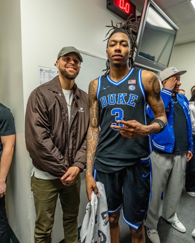 1月15日讯 今日NCAA,杜克大学客场71-56击败加州大学伯克利分校。赛后戴尔·库里、斯蒂芬·库里、赛斯·库里父子三人到访了杜克的更衣室,而作为校友的赛斯见到这群学弟们也非常开心。从画面中可以看到库里还和今年选秀热门卡梅隆·布泽尔同框致意。全场比赛,卡梅隆·布泽尔上阵31分钟16投9中,三分3中0、罚球5中3,攻下21分13篮板3助攻,有3次失误。