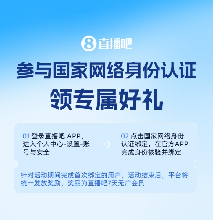 为回馈广大用户的积极参与,在活动期间([2026-04-21]—[2026-04-27])特别准备专属会员福利。首次在完成国家网络身份认证服务绑定的用户(解绑后再次绑定不计入活动奖励范围),均可免费领取7天无广告会员,礼品将于2026-04-30前自动发放,无需手动申领,请用户及时查看 APP 系统消息。(如对本次活动有疑问,可在app-反馈内提交咨询)