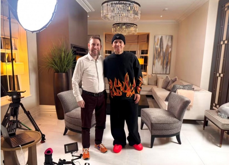 英国社交媒体上有个热门梗图叫 “小学六年级迪斯科新手套装”,包含一件下摆有一圈火焰图案的黑色衬衫、一双草坪训练鞋,以及一头竖起的尖刺发型,当恩佐这次接受采访和记者本・雅各布斯合影时,他身上穿的衬衫几乎和上述梗图里的火焰衬衫一模一样,网友们随即展开了搞笑对比。