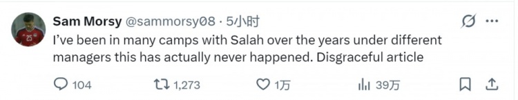 12月24日讯 前埃及国脚穆尔西社媒留言,驳斥关于萨拉赫自私心态的文章。TA记者Simon Hughes在专栏文章中谈到了萨拉赫的“自私”心态,他表示萨拉赫在埃及国家队几乎能得到自己想要的一切,他可以随意发言,一切都围绕他转动,这或许助长了他认为自己偶尔也能在利物浦这样做的念头。穆尔西TA社媒动态下面留言:“多年来,我在不同主帅麾下与萨拉赫一起参加过很多次集训,这种事(指文章中描述的情况) 实际上从未发生过,这篇文章太可耻了。”