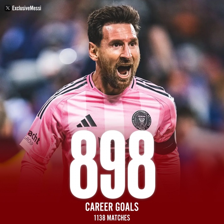 03月02日讯 美职联第2轮,迈阿密国际4-2逆转奥兰多城。梅西双响职业生涯已经打入898球。