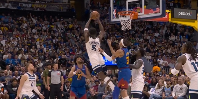 GIF-爱德华兹篮板被犯规 掘金挑战成功从穆雷改到戈登