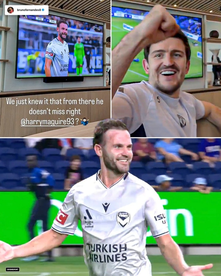 马塔的前队友B费和马奎尔在社媒发布一起观看马塔比赛的照片,并祝贺马塔的进球。